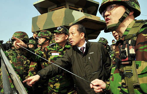 | ▲지난 27일 백령도 해병대 부대에서 사고 상황 보고를 받고 있는 김태영 국방부 장관. ⓒ연합뉴스 |