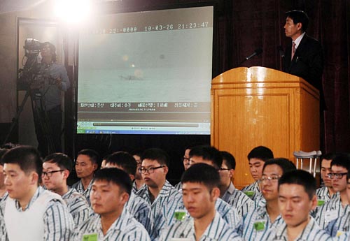 | ▲군은 7일 오전 성남 국군수도병원에서 천안함 함미 침몰 당시 TOD영상을 공개했다. ⓒ뉴시스 |