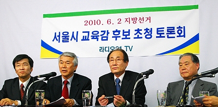 이들 네 명은 200여 개 시민·교육운동단체로 구성된 '2010 서울시 교육감·교육의원 후보 범시민 추대위원회'(추대위)에 등록된 예비후보들이다. 추대위는 여론조사와 추대위 참여단체 투표 등을 거쳐 오는 14일 최종 후보를 정할 방침이다. 9일 토론회는 최종 후보 선정에 앞서 진행되는 연속 토론회의 첫 번째다. 12일, 13일에도 토론회가 예정돼 있다.