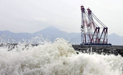 함수 인양 지연될 듯…기상 악화에 3번째 쇠사슬 끊어져