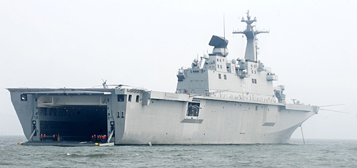 | ▲아시아 최대 규모 수송함으로 해군이 홍보하는 독도함. 전문가들은 한국군이 지나치게 육군 위주로 편재돼, 해군과 공군의 능력을 강화하는 작업이 시급하다고 지적한다. ⓒ뉴시스 |