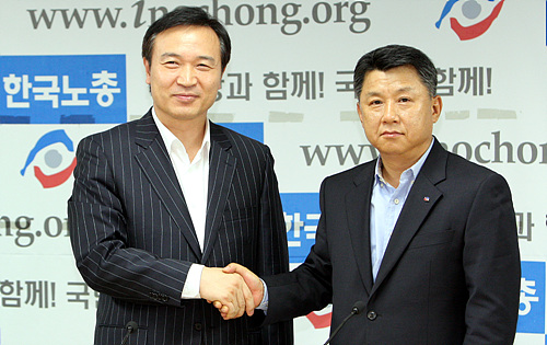 | ▲그동안도 정책연대의 위기는 수차례 있어왔지만, 이번에는 정말로 정책연대 유지의 명분을 찾기는 어려울 것이라는 것이 한국노총 안팎의 대체적인 전망이다. 사진은 지난 2008년 당시 한나라당 임태희 정책위의장이 한국노총 장석춘 위원장과 만난 모습. ⓒ연합뉴스 |