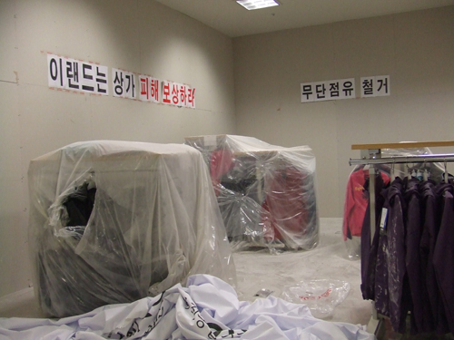 그러나 백화점 곳곳에는 여전히 상인들이 SH공사와 이랜드그룹을 상대로 벌인 싸움의 흔적이 남아 있었다. 백화점이 있는 패션관, 영관만 사람들로 북적일뿐, 리빙관과 테크노관은 여전히 유령도시처럼 인적을 찾기 어려웠다. 테크노관 2층에서 문을 연 상점은 한 손에 꼽을 정도였다.