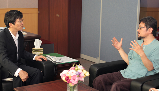 곽 당선자와 박동천 전북대 교수의 만남을 주선한 것도 이런 맥락에서였다. 교육 정책을 결정하고 집행하는 구조를 바꾸겠다는 당선자의 생각을 들여다보기에는, 어쩌면 정치학자가 제격이겠다 싶었던 게다. 물론, 곽 당선자와 박 교수가 서로에 대해 궁금해 한 것 역시 사실이다.