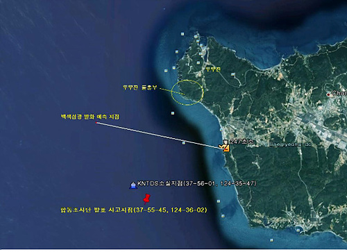 | ▲초병의 진술을 토대로 예측해 본 섬광의 발생 지점은 합조단이 밝힌 사고 지점과는 엄연히 거리가 있다. ⓒ최문순 |
