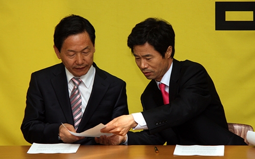 | ▲ 지난 6.2 지방선거 당시 김상곤 경기교육감(왼쪽)과 김승환 교육감 모습. ⓒ김승환 교육감 홈페이지 |