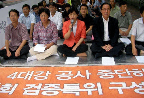 이날 오후 민주노동당 이정희 대표, 권영길 원내대표 등은 서울 정동 서울지방국토관리청 앞에서 기자회견을 갖고, "4대강 사업 중단과 국회 내 '4대강 사업 검증 특별위원회' 구성을 촉구하며 의원단 및 최고위원들이 거리 농성에 돌입한다"고 밝혔다.