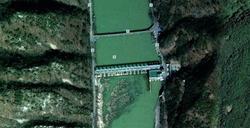 | ▲ 의암댐 위성사진. 4대강의 다기능보와 유사한 형태의 댐이다. |