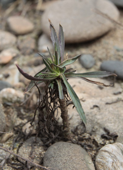 | ▲ 세계 유일의 희귀 식물이자 환경부 지정 '멸종위기 야생동식물 2급'인 단양쑥부쟁이. 사진은 지난 4월 도리섬에서 촬영된 것이다. ⓒ프레시안(선명수) |