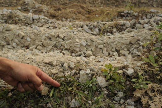 | ▲ 원주시 부론면 흥원창 제방 일대(섬강살리기 13공구)에서 4대강 사업으로 훼손된 단양쑥부쟁이 자생지. ⓒ4대강범대위 |