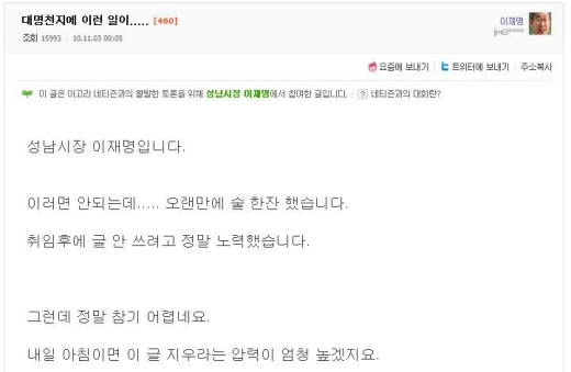| ▲ 이재명 시장이 포털사이트 다음 아고라에 올린 글. ⓒ다음 |