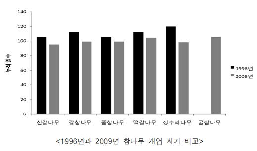 | ▲ 서울지역 참나무의 개엽 시기 변화. ⓒ국립환경과학원 |