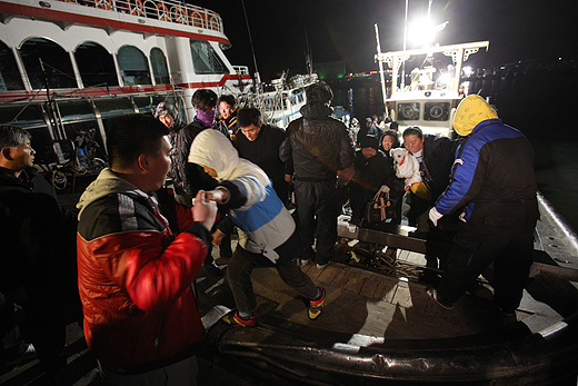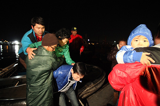 미처 가족을 만나지 못해 애를 태우는 것은 다른 주민들도 마찬가지였다. 이름을 밝히기 거부한 김모(63) 씨는 "1시간 째 부두에서 남편을 기다리고 있는데, 연락이 되지 않는다"며 "부상자 명단엔 없는 것 같지만, 잘 있는지 어느 배로 오는지 몰라 애가 탄다"며 울먹였다.