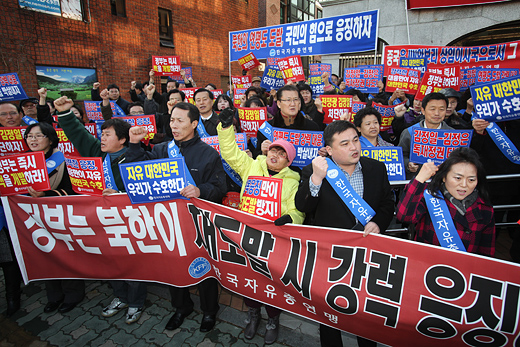 | ▲ 북한의 연평도 포격에 대한 정부의 강경 대응을 요청하는 보수단체의 집회가 29일 오후 중국대사관 앞에서 열렸다. ⓒ프레시안(최형락) |