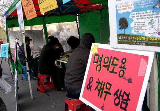 | ▲ 노숙인들이 '명의도용 및 채무 상담', '일자리 구하기' 등에 대해서 상담을 받고 있다. ⓒ프레시안(허환주) |