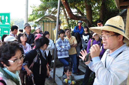 | ▲ 이원영 교수가 답사 참가자들에게 4대강 사업에 대해 설명하고 있다. ⓒ333프로젝트답사단 |