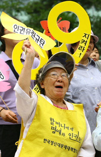 | ▲일본군 위안부 문제해결을 위한 제771차 정기 수요시위에서 길원옥 할머니가 일본의 평화헌법 9조 개정 움직임에 반대하는 구호를 외치고 있다. ⓒ연합뉴스 |