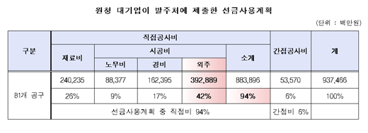 선금 81.5% 하청업체·노동자 몫인 데도…결국 건설재벌 '호주머니'로