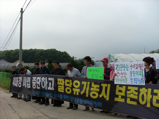 '농지 보존·친환경 농업 사수를 위한 팔당공동대책위원회(팔당 공대위)' 유영훈 위원장은 "이명박 대통령이 항상 강조하는 것이 '법치국가'지만, 법원 판결도 무시한 '법치'가 어디에 있느냐"며 "법원이 농민들의 손을 들어준 이상, 어떤 방법을 써서라도 공사를 막아 내겠다"고 말했다.
