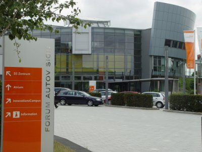 '혁신 캠퍼스'는 볼프스부르크 시의 서쪽 외곽지역에 위치해 있는 건물 '포룸 아우토비전(Forum Autovision)'의 한 자리를 차지하고 있다. 4층 높이의 이 건물 안에는 신규 창업자와 투자자, 창업 자문가 등이 함께 일하며 정보를 교환하고 있었다.