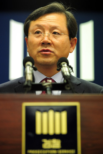 | ▲ 6일 오후 서울중앙지검 브리핑실에서 윤갑근 차장이 지난 10·26 서울시장 재보궐 선거 당일 일어난 중선관위 홈페이지 디도스 공격과 관련해 수사 결과를 브리핑하고 있다. ⓒ뉴시스 |