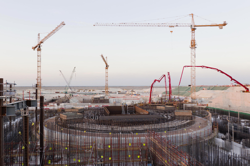 | ▲ 21일(현지시각) 아랍에미리트(UAE) 바라카의 원전건설 현장에서 원자력발전소 1·2호기 착공식이 이명박 대통령과 UAE 모하메드 왕세자, 홍석우 지식경제부 장관, 변준연 한전사장대행 등이 참석한 가운데 열렸다. 사진은 바라카에 건설 중인 원자력발전소. ⓒ연합뉴스 |