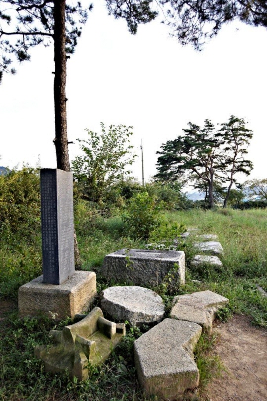 | ▲ 박혁거세가 처음 등장한 나정의 발굴현장. 조선 순조때 세운 유허비와 석재들이 한군데 쌓여있다. 김시습은 혁거세가 금척을 지닌, 단군으로부터 유래된 혈통이기에 어린 나이에 왕으로 추대됐으리라고 한다.ⓒ이순희 |