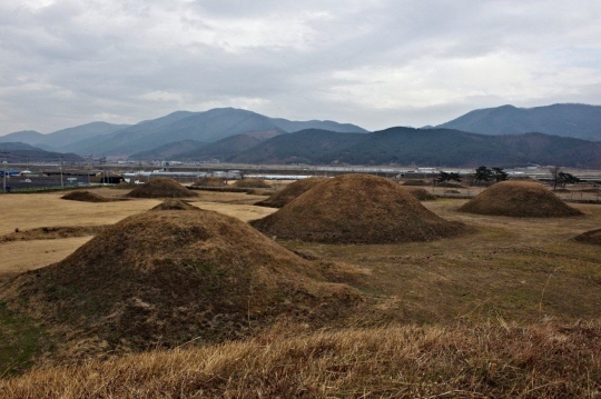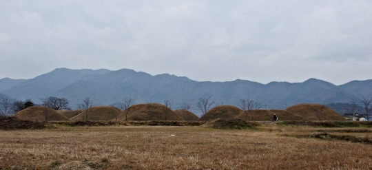 | ▲ 금척리 고분군에는 봉분이 뚜렷한 무덤옆에 납작해진 무덤까지 30여 고분이 남아있다. 쓸쓸한 장소지만 드라머틱한 금척 이야기가 역사의 뒷면을 관통해 길게 이어진다. ⓒ이순희 |