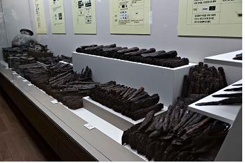 칼과 무기, 쇠로 된 가래 같은 농기구 일체는 왕의 유물 칸에서 나왔다. 두껍게 녹슨 채 쌓여있는 쇳덩이들은 '동북아에서 출토된 최대 물량의 철물'이라고 한다. 나라의 힘은 바로 이들 쇠와 말에서 나왔다. 지금의 미사일 무기 같은 비중이었을 것이다.