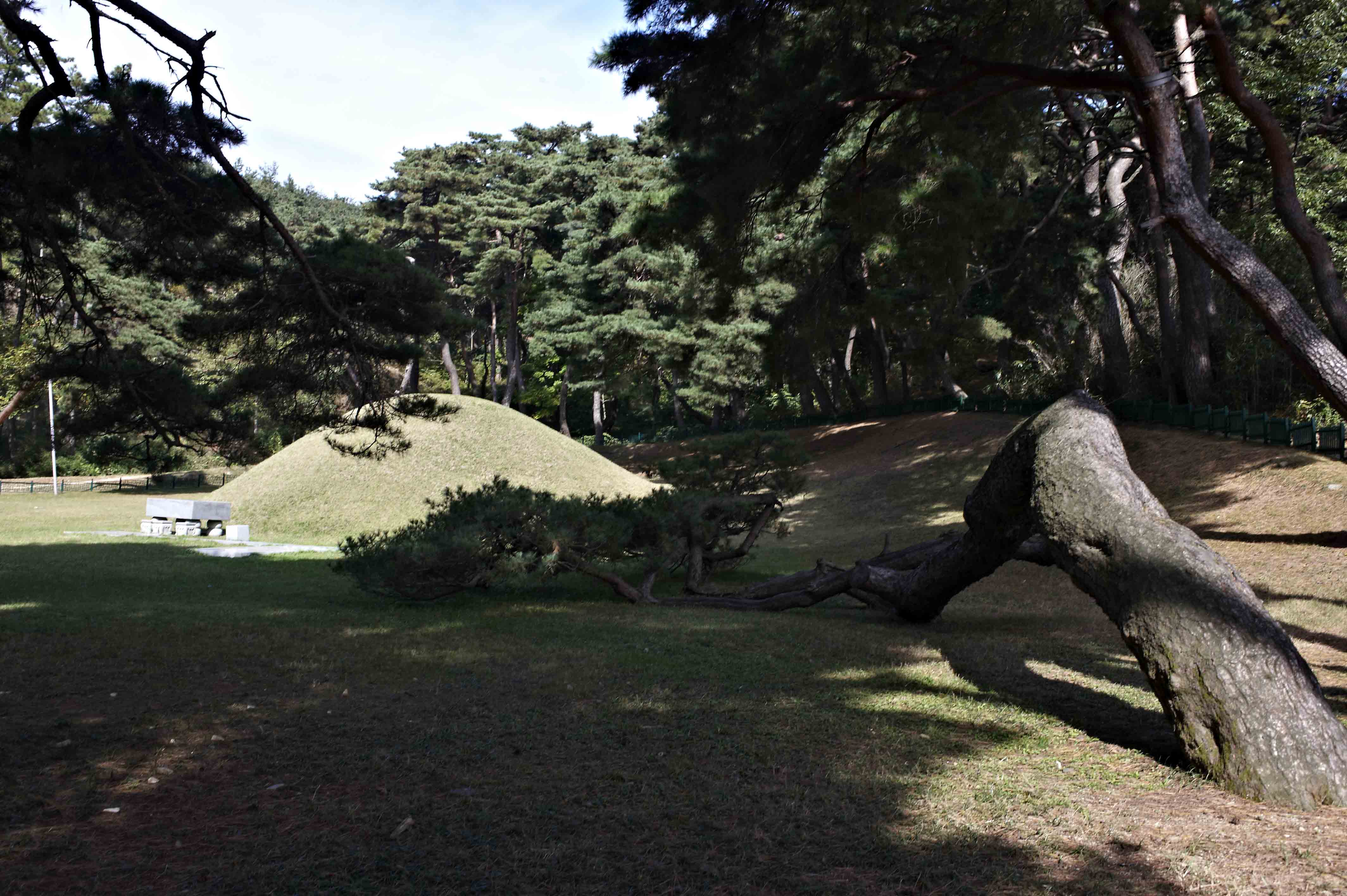 | ▲ 경주시 동천동의 석탈해 왕릉. 석 씨들이 이 무덤을 석탈해 왕릉으로 정하여 제사지낸다. 1974년에 도굴되었다. 경주의 특징적인 굽은 소나무가 감싸고 있다. ⓒ이순희 |