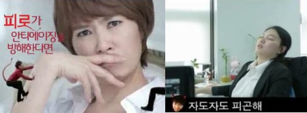 비타민제인 아로나민 씨플러스정(일동제약)은 "피로가 안티에이징을 방해한다면", "자도 자도 피곤해. 피로물질 때문에. 이대로는 큰일 나. 피로물질 때문에"라고 광고되고 있다. 건약은 "노화를 방지한다는 것은 과장된 효능 광고"라고 지적했다. 또 "피로물질이 무엇인지 밝히기 않았으나, 피로물질은 피곤의 원인이 아닌 결과로 생성되는 물질일 가능성이 높다"며 "과학적으로 정확히 규명되지 않은 사실을 광고하고 있다"고 분석했다.