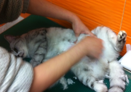 | ▲ 동물 병원에서 중성화(불임) 수술에 들어가기 전 고양이의 털을 깎고 있다. ⓒ김소연 |