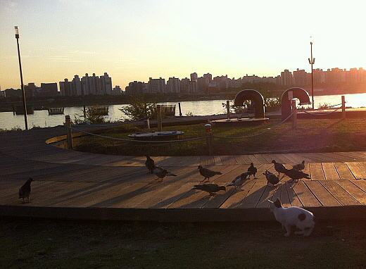"'여기다 밥 놓지 말라고, 고양이 낀다고, (음식물) 쓰레기봉투 뜯고 지저분하다'고. 그러면 '네' 하고 피해요. 굳이 싸워서 좋지 않거든요. 나랑 싸우고 엄한 데 화풀이하지 않게 안 부딪치려고 해요. 밥 줄 때도 밤에 잘 안 보이는 데다 줘요. 봄, 가을에는 안 주고, 눈 많이 올 때만 줘요. 단, 집에서 국물을 우려내고 남은 멸치는 생기는 대로 족족 창밖으로 던지죠."