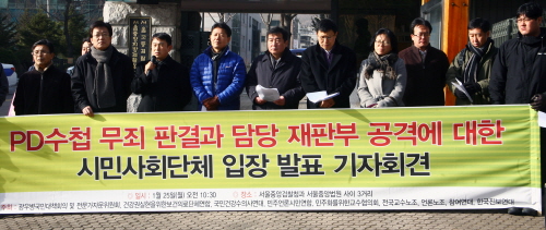 | ▲ <PD수첩> 무죄 판결과 담당 재판부 공격에 대한 시민·사회단체 입장 발표 기자회견. ⓒ언론노보 |