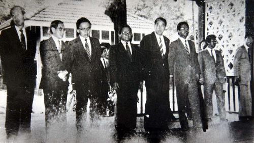| ▲ 테러 사건 당시 버마 아웅산 국립묘지 헌화 행사에 도열한 수행원들. 색이 바랜 이 한 장의 사진은 당시 연합통신 최금영 기자(중상으로 입원)가 폭발 참사 수초전에 찍은 것이다. ⓒ연합뉴스 |
