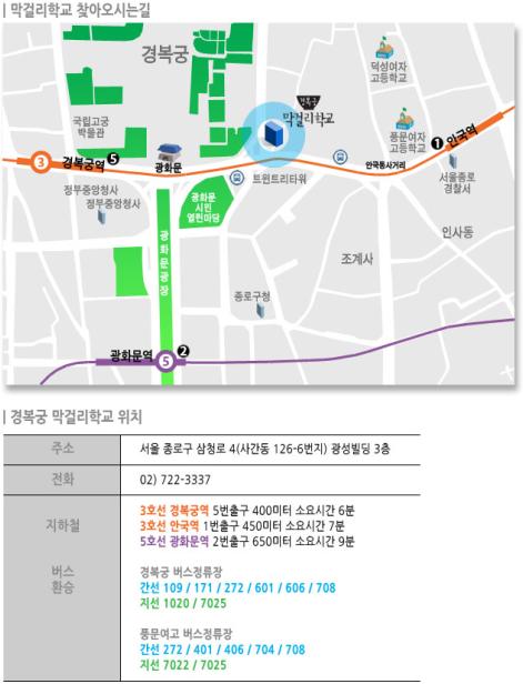 - 강의장소 : 서울시 종로구 삼청로 4 막걸리학교