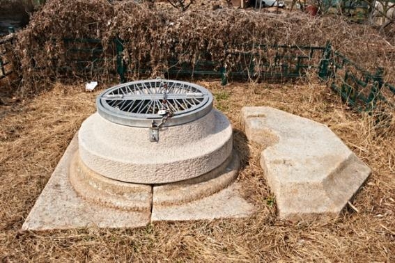 남간마을엔 '남간사지 우물'이 하나 있다. 명랑스님과 관련이 있는지는 알 수 없지만, 어쨌든 그의 동네에 오래전부터 있는 우물임은 틀림없다. 골목을 한참 왔다갔다하다가 동네 공터에서 오래된 우물 테두리 돌을 보았다. 두 개의 돌을 상석처럼 이어 붙이고 지표에서 한 10센티미터쯤 위로 솟은 돌 우물인데 자그마했다. 문화재보호를 위해 옛 우물 위에 큼직한 돌을 덮고, 그 위에 또 스테인리스 구조물을 얹어 옛우물의 면모는 가려져 있었다. 동네 사람들은 아직도 우물 물이 고인다고 말했다.