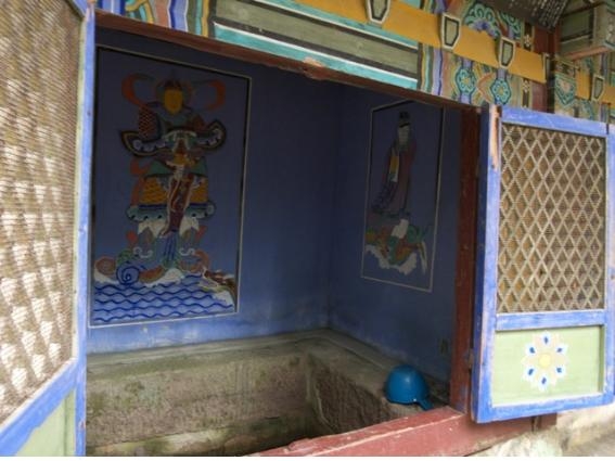 어느 절이나 용왕각은 있지만 두 군데 웅덩이를 거치며 흐르는 수로를 낸 우물은 처음 보았다. 1500여 년 전의 자정과정을 보여주는 우물로 보였다. 지금은 호스를 땅 밑으로 연결해 전각 안에 고이는 물을 끌어다 아래쪽에 건축한 절의 생활 용수로 쓴다.