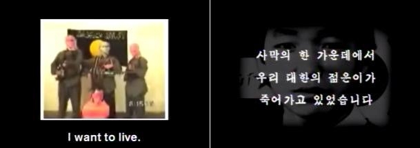 이 영상물에는 지난 2004년 이라크 무장단체에 의해 피살된 김 씨가 억류된 상태에서 영어로 "노무현 대통령, 나는 살고 싶다. 한국으로 돌아가고 싶다(President Roh Moo-hyun. I want to live, please)"고 절규하는 대목이 담겨 있다.