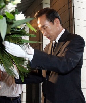 ▲ 이명박 전 서울시장이 서해교전 5주기를 맞아 용산 전쟁기념관에서 헌화하고 있다. ⓒ연합
