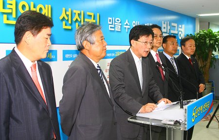특히 유 의원은 검찰이 김해호 씨가 '최태민 비리 의혹'을 제기하는 과정에 이명박 후보 측의 임현규 정책홍보단장과 정두언 의원 보좌관인 김우석 씨 등이 연루된 것으로 보고 수사를 벌이고 있는 것과 관련해 "이는 한나라당의 경선 역사상 가장 추악한 사건으로 기록될 것"이라고 몰아붙였다. 그는 "이게 캠프인가, 범죄집단인가"라면서 "정치공작의 진실이 밝혀지면 이 후보는 깨끗이 사퇴하라"고 주장했다.