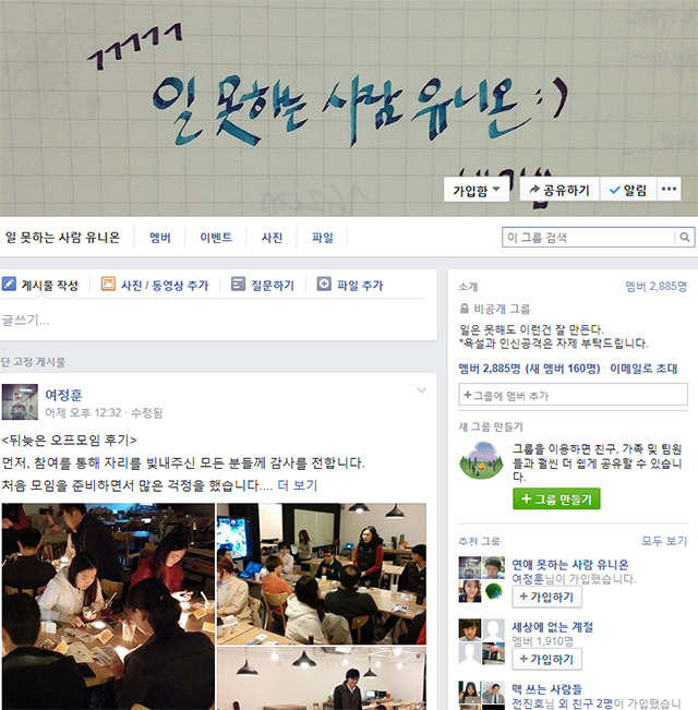 조합원들이 점점 늘어나다 보니 고민거리도 생겼다. '일못'은 페이스북 계정을 가진 이라면 누구나 가입할 수 있는 열린 공간이다. 여 씨는 이곳에 올린 글로 누군가는 불이익을 받지 않을지 걱정이 되는 게 사실이라고 했다.