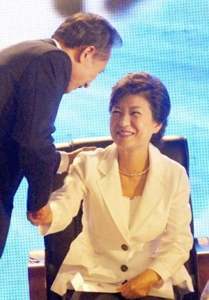 ▲ 지난 20일 한나라당 전당대회에서 한나라당 후보로 당선된 이명박 후보가 결과발표 직후 박근혜 전 대표와 악수를 나누고 있다. ⓒ뉴시스
