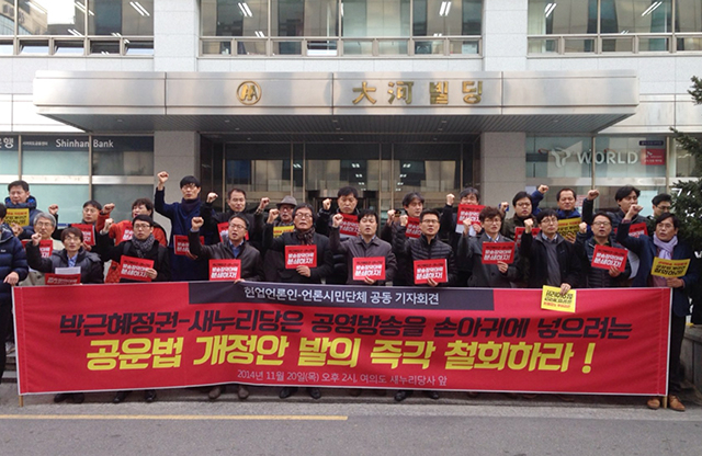 이에 KBS·EBS·전국언론노동조합·한국기자협회·방송인총연합회 등은 20일 오후 영등포 여의도동 새누리당사 앞에서 기자회견을 열고 "KBS·EBS의 예산과 인사를 통제하고, 더 나아가 입맛에만 맞는 보도와 프로그램만을 편성하도록 감시하겠다는 마각을 노골적으로 드러낸 것"이라며 크게 반발했다.