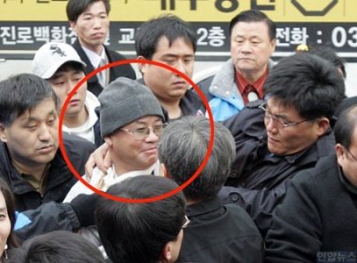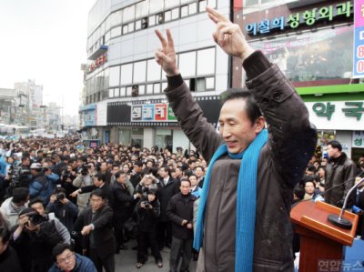 계란을 던진 이 남성은 곧 경호원들에게 잡혀 경찰서로 연행됐고, 이명박 후보는 계란을 맞아 더러워진 옷을 닦아 내고 그대로 유세를 진행했다.