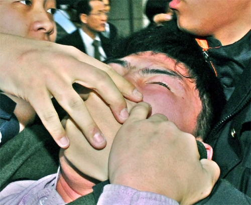 대학생들은 비상계단을 통해 끌려 가면서도 "비리후보 이명박 사퇴하라, 이 후보를 구속하라"는 구호를 외치며 몸싸움을 벌였지만 결국 모두 입이 막인 채 연행됐다.