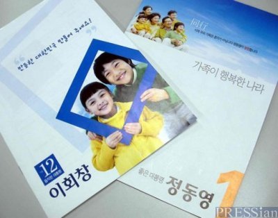대통합민주신당 정동영 후보와 무소속 이회창 후보 선거 홍보물의 표지에 같은 아이 모델이 등장하는 웃지 못할 일이 벌어졌다.