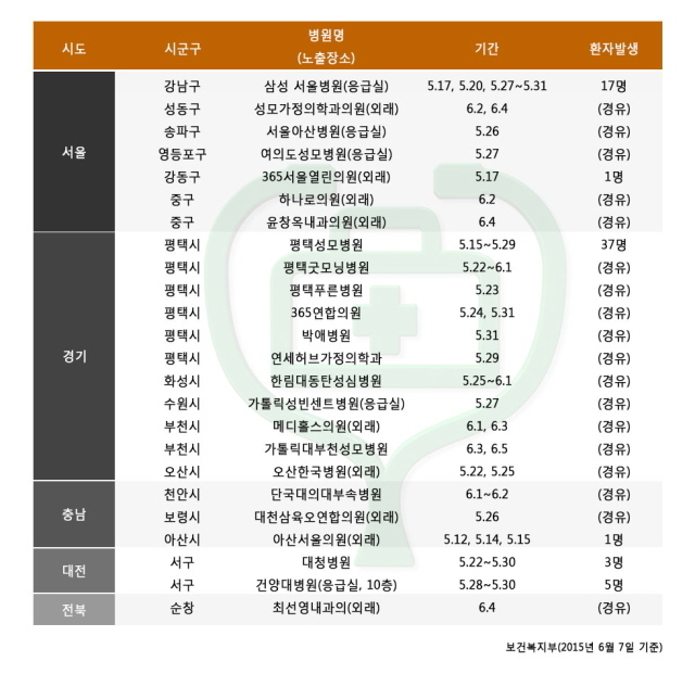 서울시교육청은 휴업 대상 지역을 강남구와 서초구로 정했다. 이 지역은 전국에서 두 번째로 많은 메르스 환자가 발생한 삼성서울병원 인근 지역이다. 기간은 8일부터 10일까지 총 사흘간이다. 시교육청의 결정에 따라 8일 휴업에 돌입하는 학교는 유치원 69곳, 초등학교 57곳, 총 126곳이다.