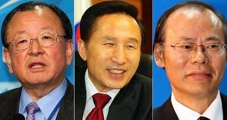 ▲ (왼쪽부터) 강만수 재정경제부 장관 내정자, 이명박 당선인, 남주홍 국무위원 내정자. ⓒ연합뉴스
