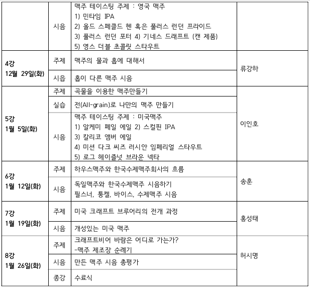 - 참가비용 : 50만원(수강료, 교재비, 실습재료비, 40가지 맥주 시음비, 안주비 등 포함)입니다.